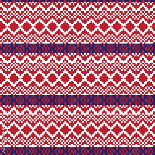 Red Christmas Fair Isle Seamless Pattern Background