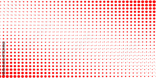 Red color halftone gradient texture. Vanishing cartoon polka dot background. Repeating dotted gradation pattern. Fading comic pop art overlay backdrop. Raster halftone effect wallpaper. Vector