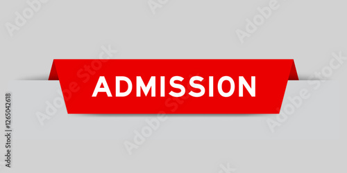 Red color inserted label with word admission on gray background