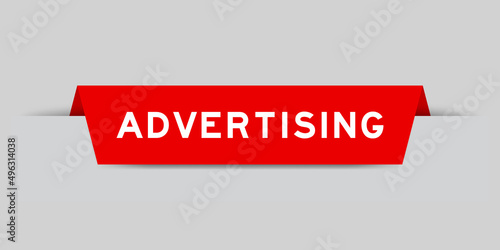 Red color inserted label with word advertising on gray background
