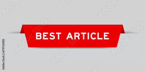 Red color inserted label with word best article on gray background