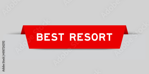 Red color inserted label with word best resort on gray background