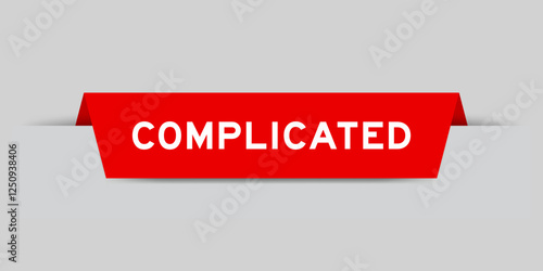 Red color inserted label with word complicated on gray background