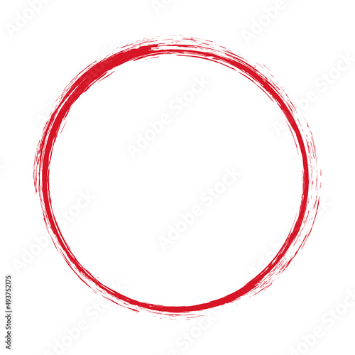 red colored vector illustartion of round brush painted ink stamp banner frame on white background