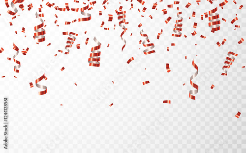 Red confetti. Celebration carnival falling shiny glitter confetti. Luxury greeting card. Vector illustration