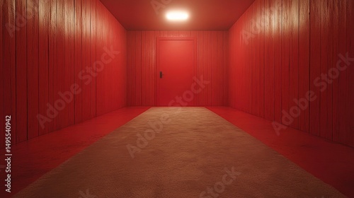 Red corridor leading to a door