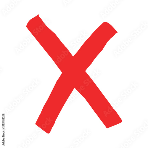 red cross mark icon on white background. Bold red hand-drawn cross mark icon.