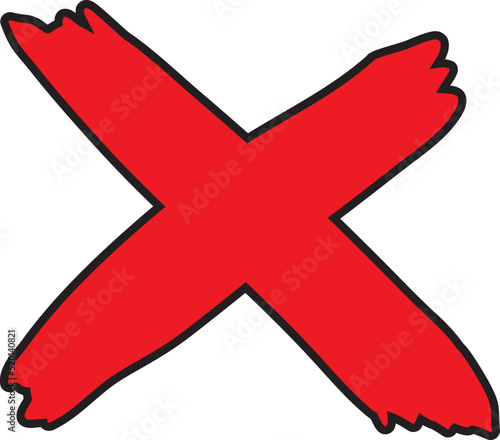 red cross mark x sign with brush style and outline vector cartoon illustration