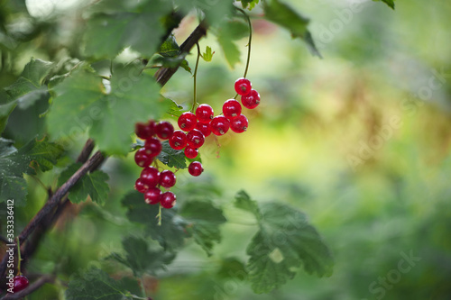 red currant berries on a branch in the summer in the garden