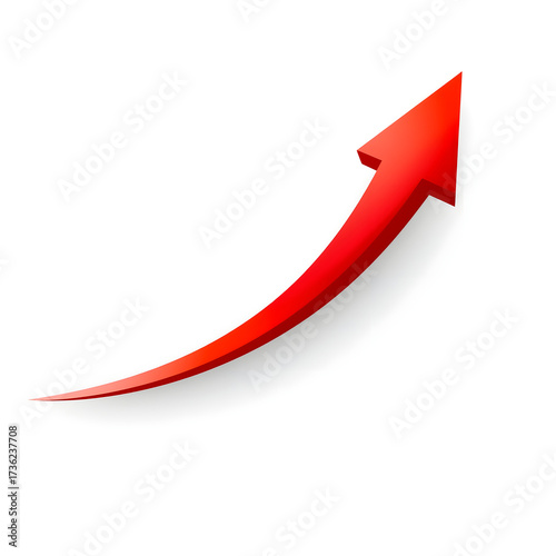 Red Curved Arrow Icon, 3D Gradient Upward Growth and Trend Symbol