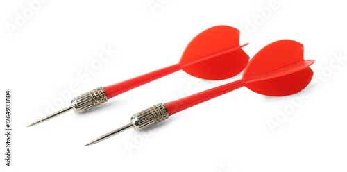 Red dart arrows isolated on white. Sports equipment