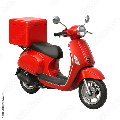 Red delivery scooter with a large red cargo box isolated on transparent background
