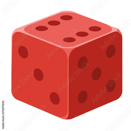 Red dice displayed in a simple, flat design, vector illustration on transparent background