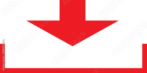 Red download symbol icon. Red line drawing on transparent background PNG with isolated.