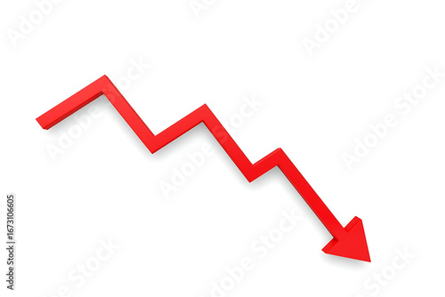 red downward trending arrow in data visualization represents negative financial performance, losses, and warning signals, while the green upward arrow conveys positive trends.