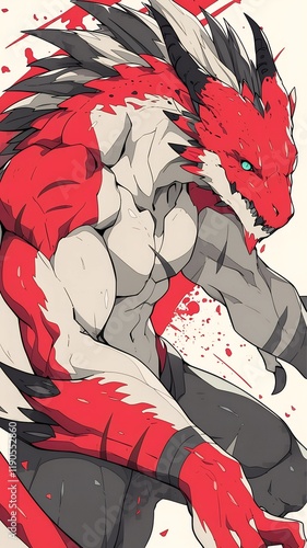 Red Dragon Warrior in Battle Pose, Anime Art Style