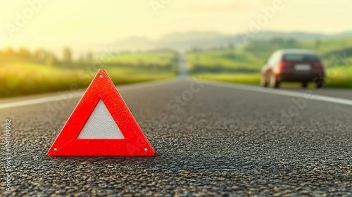 Red Emergency Triangle on Open Road The red emergency triangle signals danger on the road concept.