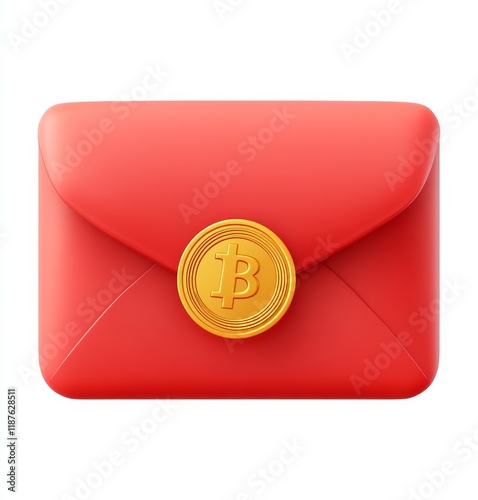Red envelop icon with bitcoin symbol for digital currency and finance