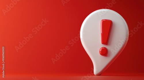 Red Exclamation Point Icon on White Speech Bubble, 3D Render, Minimalist Design