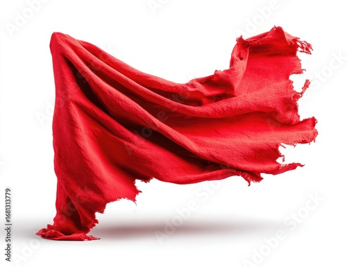 Red fabric, billowing, dramatic, against white background