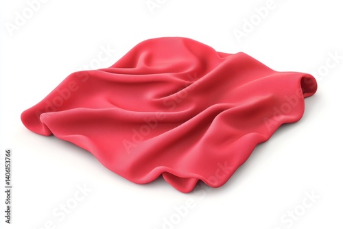 Red fabric crumpled on white background, studio shot, textile product display