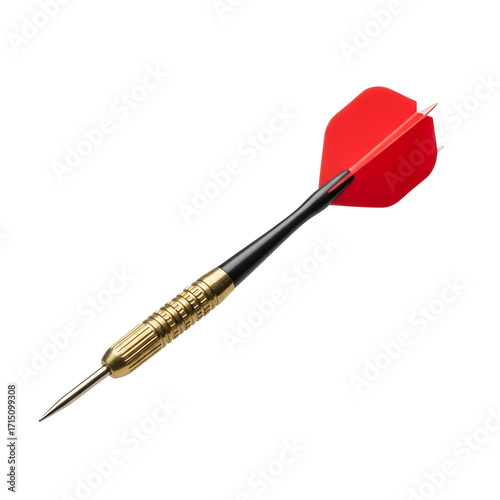 Red finned dart with gold barrel on black darts game