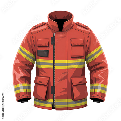 Red Firefighter Jacket with Reflective Stripes and Pockets