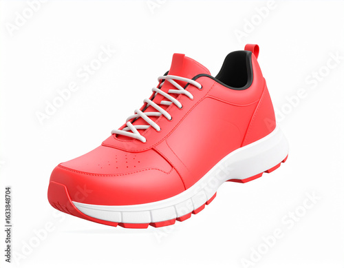 Red Fitness Running Shoe. Sneakers. 3d rendering isolated on white background. Cartoon plastic style icon.shoe, sport, foot, pair, person, footwear, black, fashion, sneaker, style, Generative AI