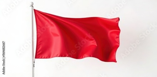 Red flag suspended in mid air against white background, danger, caution, warning signal