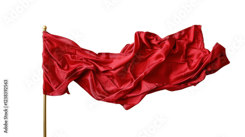Red flag waving on golden pole with transparent background