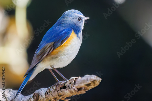 羽ばたいて飛び出す幸せの青い鳥、可愛いルリビタキ(ヒタキ科) 英名学名:Red flanked Bluetail (Tarsiger cyanurus) 埼玉県北本市、北本自然観察公園 2025