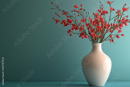 Red Flower Branches in White Vase Minimalist Home Decor