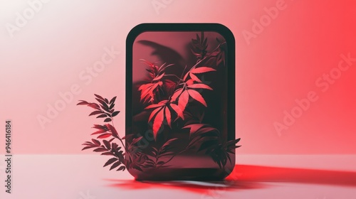 Red Foliage Enclosed in a Black Frame Against a Gradient Background