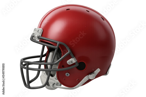 Red football helmet with face mask ensuring safety during intense gameplay, isolated on transparent background