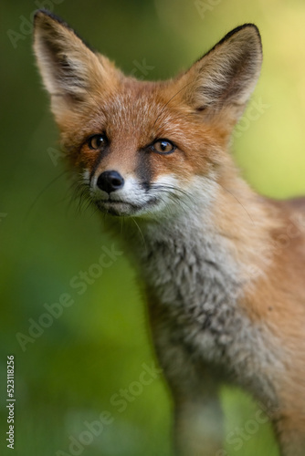 Red fox kit portrait at summer morning