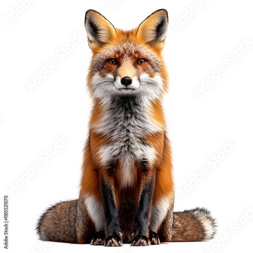 Red Fox Sitting with Tail Behind It Isolated on Transparent Background