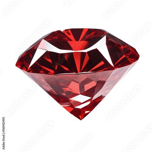 Red gemstone with sharp, glinting facets isolated on a transparent background.