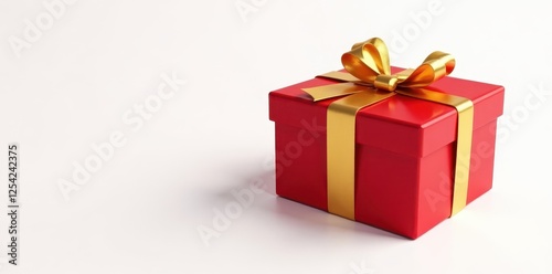 Red gift box, gold ribbon, isolated white background, bow, holiday gift, xmas