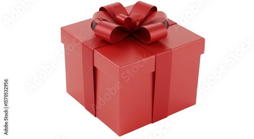 Red Gift Box with Ribbon Present Celebration Surprise Package Isolated