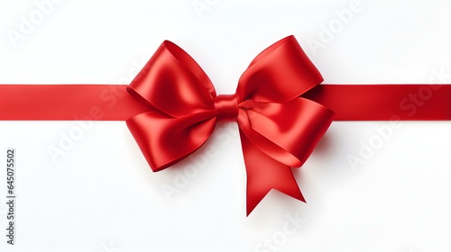 Red Gift Ribbon with a Bow on a white Background. Festive Template for Holidays and Celebrations