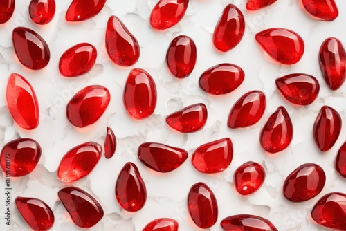 red glass pebbles on a white surface