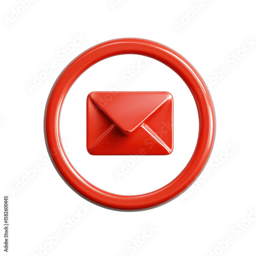 Red Glossy Email Icon in Circle Communication Notification and Business on transparent background
