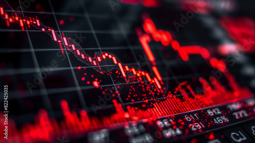Red glowing digital stock chart on screen. Finance, investment, and market growth