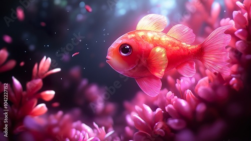 Red Goldfish Swimming in Coral Reef - Underwater Fantasy