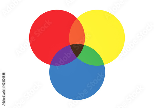 Red Green Blue or RGB color system circular diagram isolated on white background.