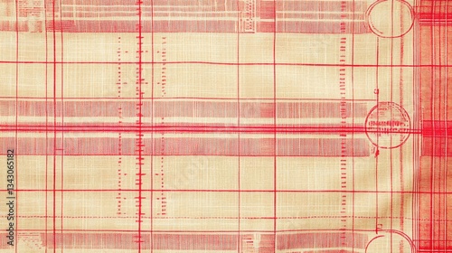 Red grid blueprint design, textured paper, vintage background, architectural plans