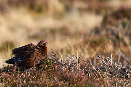 Red Grouse (Lagopus lagopus) on a grouse moor in the highlands of Scotland, United Kingdom.