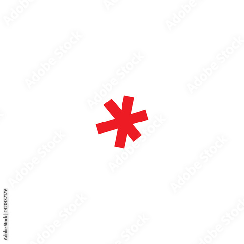 red hand drawn asterisk footnote icon. Flat icon of lopsided footnote isolated on white background.
