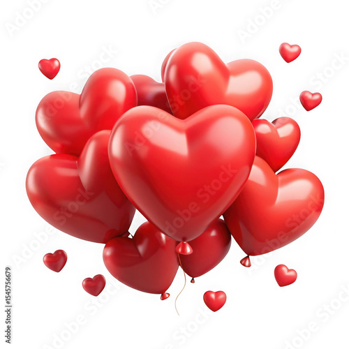 Red heart balloons bunch isolated on transparent background