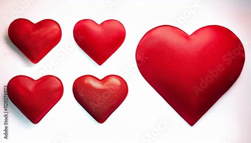 Red Heart Flat Cartoon Icons. Romantic Abstract Symbols in Various Shapes for Valentin